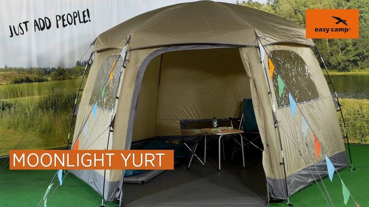 Sleeping up to six glampers, with pre-angled FRP poles ensuring full headroom throughout, the Easy Camp Moonlight Yurt offers the size and freedom for families and friends to create unique spaces, connecting them with nature and sharing fun outdoors. PVC windows deliver internal light, with toggle-up curtains for privacy, whilst easy access is guaranteed through the wide, fold flat entrance with double slider zippers on the door for flexible opening. Large mesh panels under the flysheet cap, a mesh window in the door, with a toggle-up curtain, and covered rear vent ensure ample ventilation and easily adjustable fresh airflow.