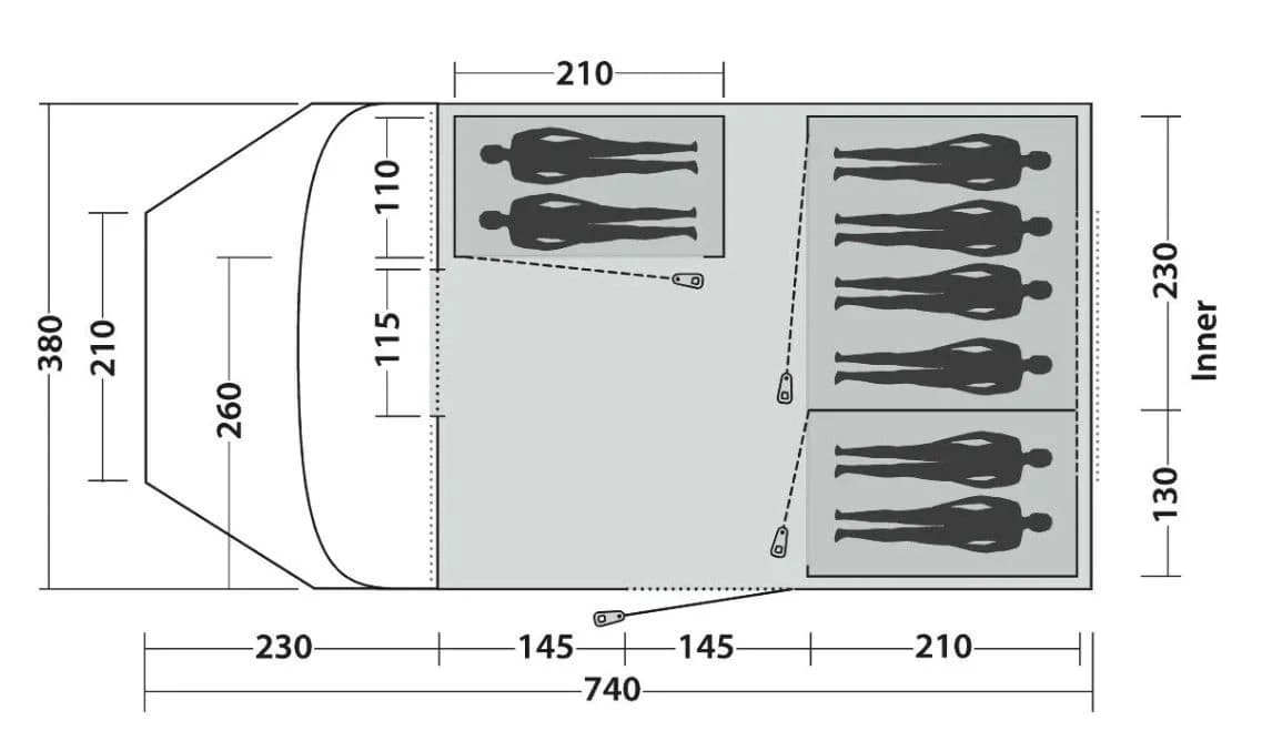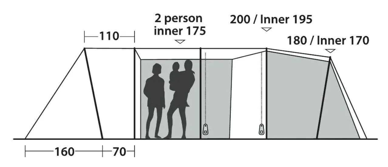 - Fully sheltered front room which works perfectly as a wet zone, a place to cook and store your gear