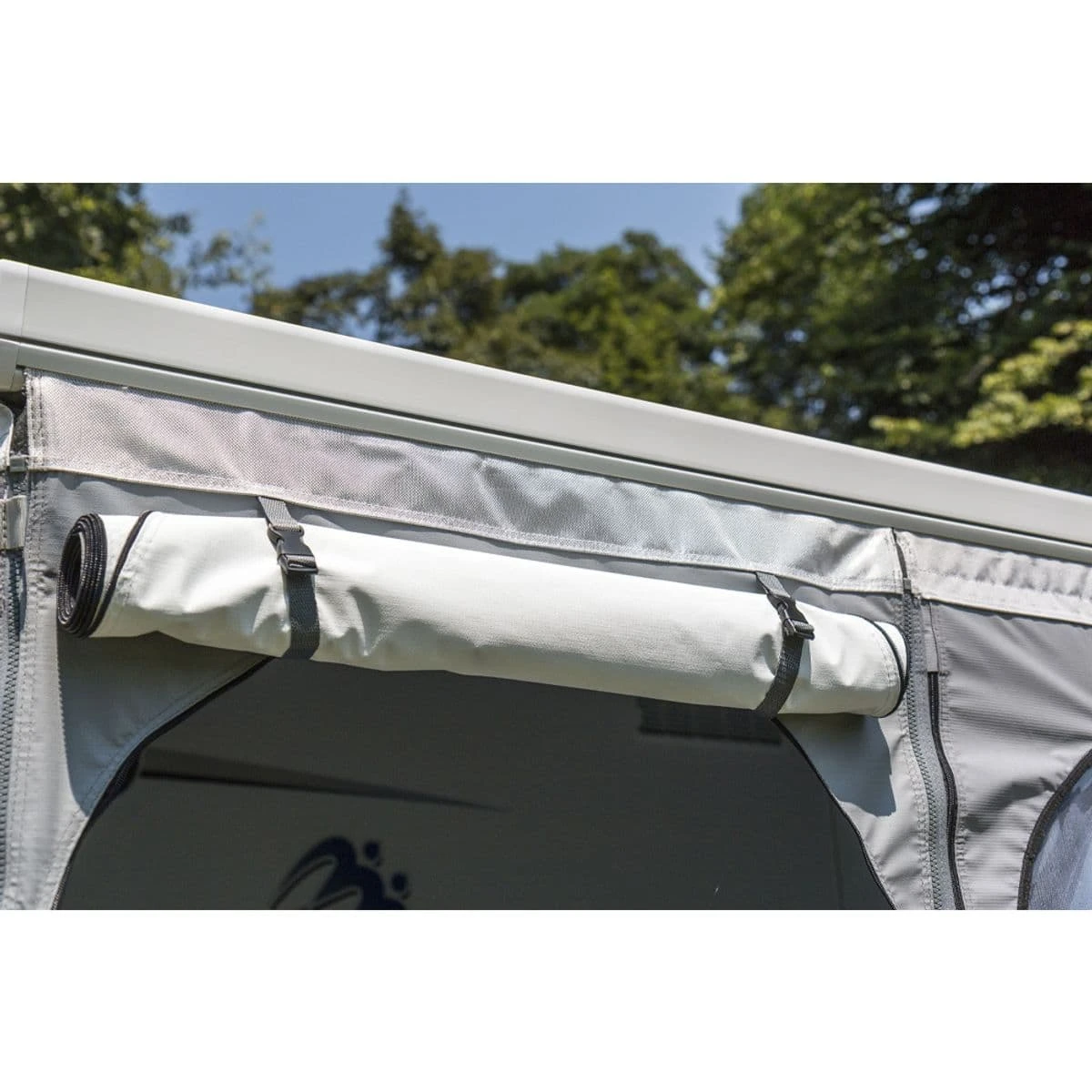 The Fiamma Privacy Room 300 Medium is suitable for use in all seasons. It consists of a front panel with door and two side panels that transform F45s, F70 and F45L Fiamma awnings into comfortable living areas. This Privacy Room also fits perfectly to the Omnistor 5002, 5003, 4900 and Tristor 2. This enclosure is made up of a 300cm front panel with door. For wider awnings, the relevant front panel extension can be ordered separately.
