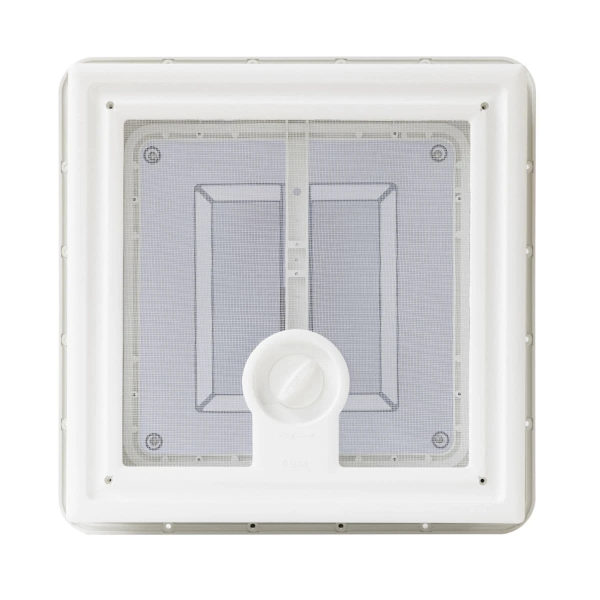 A 40 x 40cm Fiamma roof vent designed to provide permanent ventilation for constant exchange of air. Suitable for motorhomes, caravans and van conversions, this model is fitted with an aluminium mosquito net and has a transparent ‘crystal’ cover letting in as much light as possible. The aerodynamic design means this vent does not need to be fitted with a spoiler and noise and vibrations are greatly reduced. A patented rubber seal and high-quality UV resistant materials guarantee a watertight system whilst protecting the vent and vehicle against the elements. This model is interchangeable with older 40 x 40cm Fiamma roof vent models and with vents from 36 x 36cm to 42 x 42cm, thanks to its reinforced frame. The roof vent is easily opened using the handwheel. For 40 x 40cm motorised vents, see the Fiamma Turbo Vent or Turbo Vent Premium, both available with white or transparent ‘crystal’ covers. The Fiamma Vent 40 can be installed on roofs from 2.5cm to 5cm thick (optional fitting kit 98683-112 can be used for a roof thickness of upto 8.5cm), and is available in two roof cover colours – Classic White or transparent Crystal.
