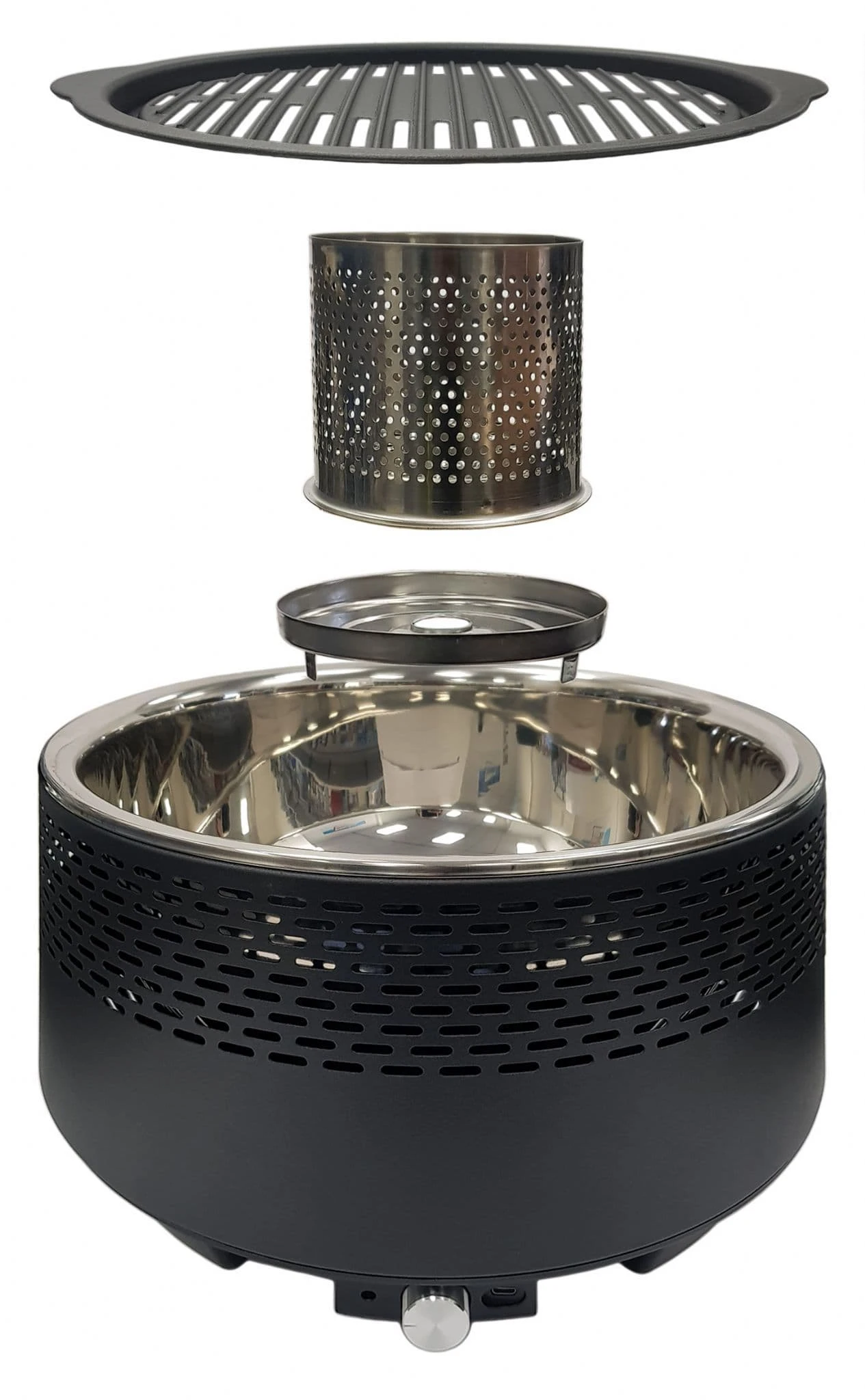 - Featuring a detachable fan box, it is easy to clean and avoids grease dropping onto the charcoal, creating smoke and damage to the base