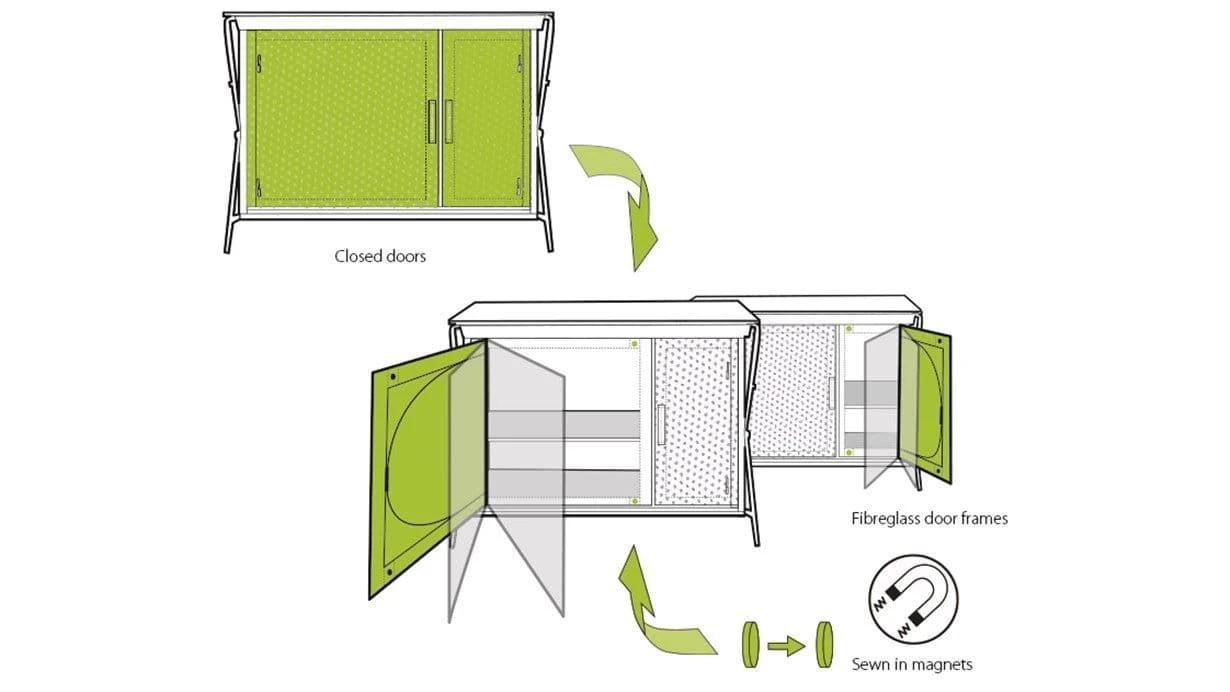 - Magnets seal door to cabinet